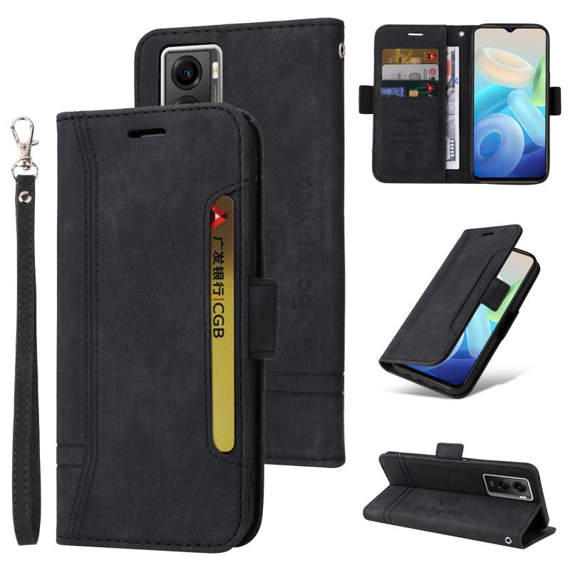 Για vivo Y55 5G Global / Y75 5G Global Θήκη τηλεφώνου από δέρμα με διπλή αγκράφα BETOPNICE (Μωβ) (Μαύρο)