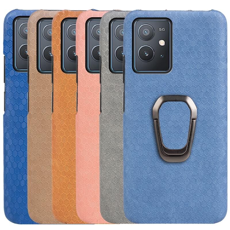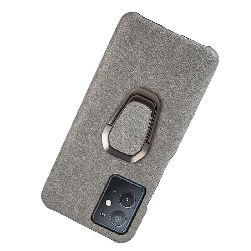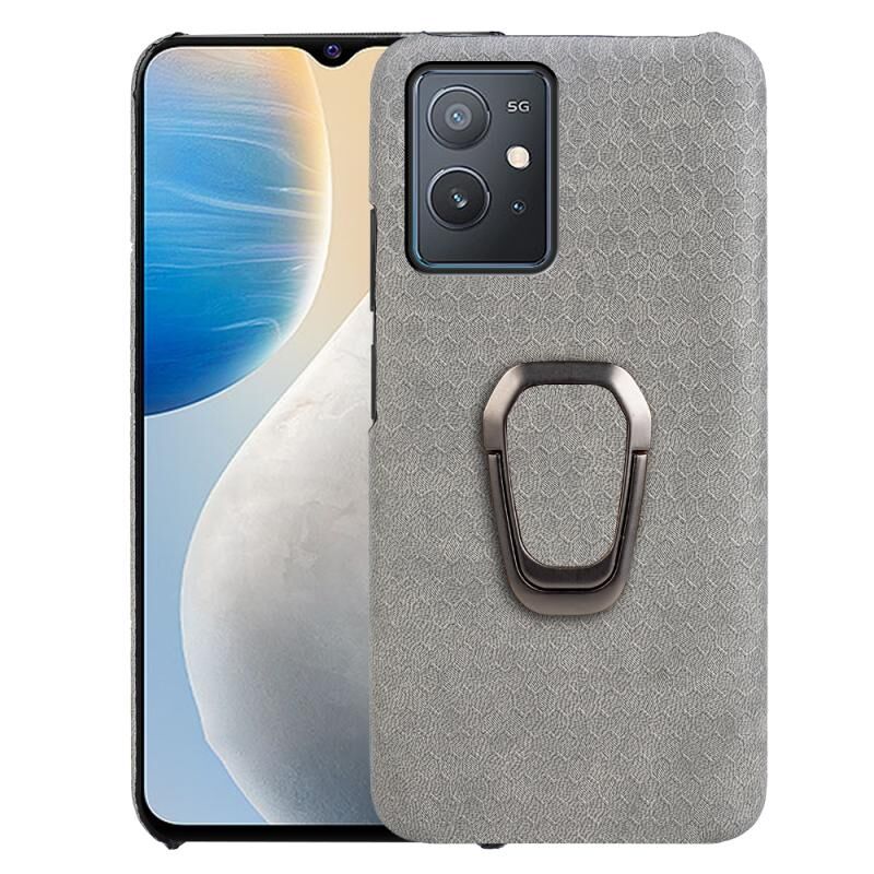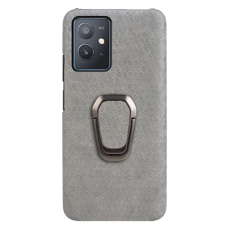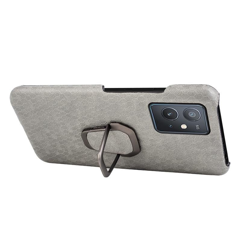 Για vivo Y55 5G / T1 5G / iQOO Z6 Ring Holder Honeycomb PU τηλέφωνο υπόθεση (γκρι)