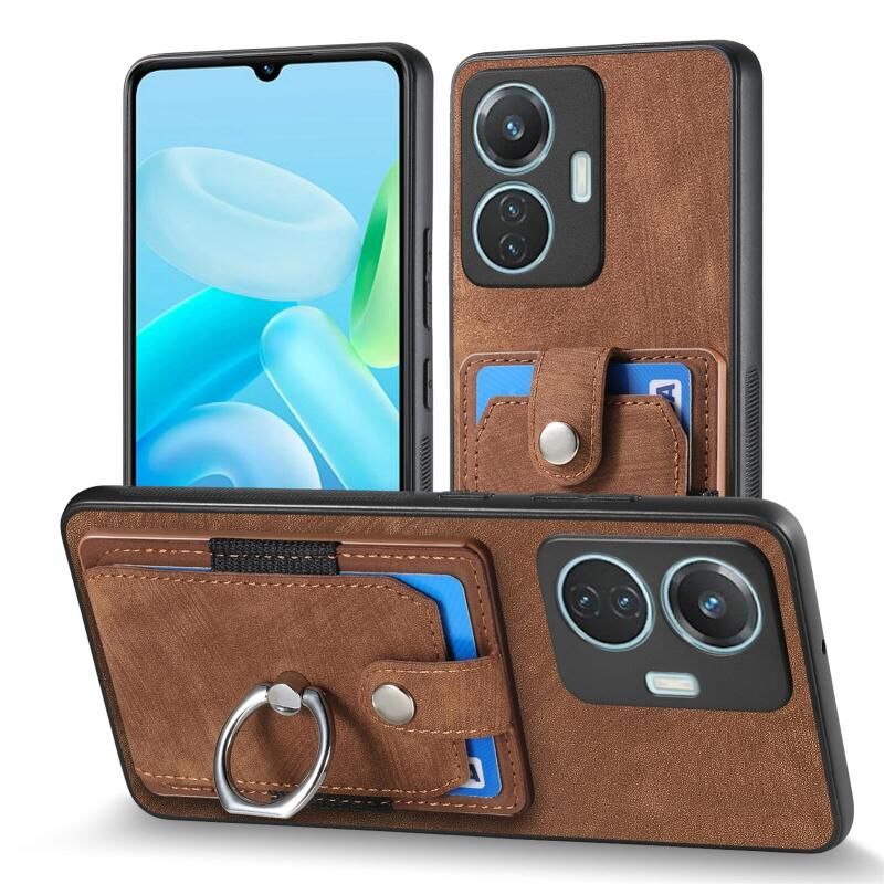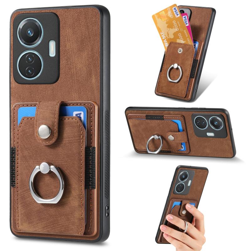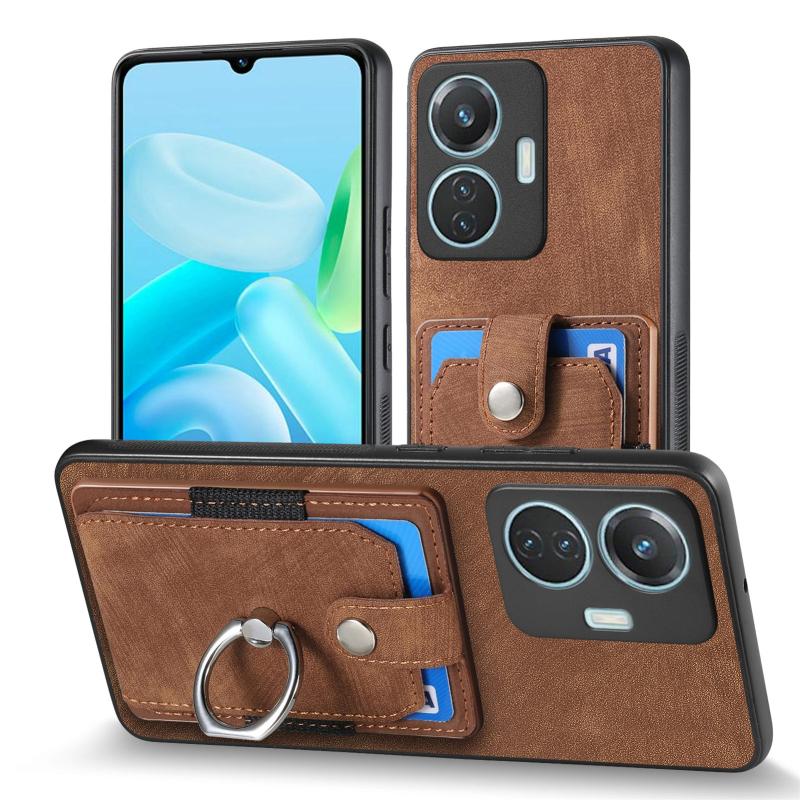 Θήκη τηλεφώνου για vivo Y55 Retro Skin-feel με Δακτύλιο και Θήκη Καρτών (Μωβ)