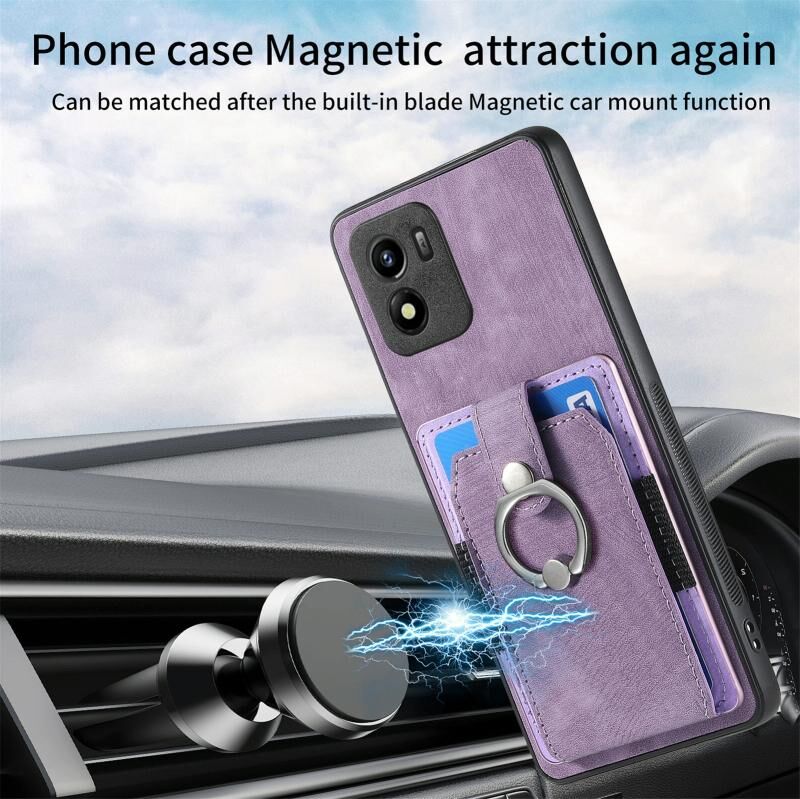Για το vivo Y55 Ρετρό δέρμα αίσθηση δαχτυλίδι πολυ-κάρτα πορτοφόλι υπόθεση τηλεφώνου (Μωβ)