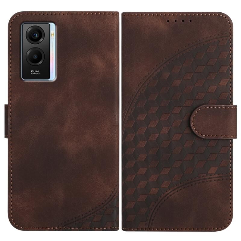 Θήκη δερμάτινη για vivo Y55s 2023 5G/Y55 5G με ανάγλυφο σχέδιο κεφαλής ελέφαντα και κορδόνι (Καφέ)
