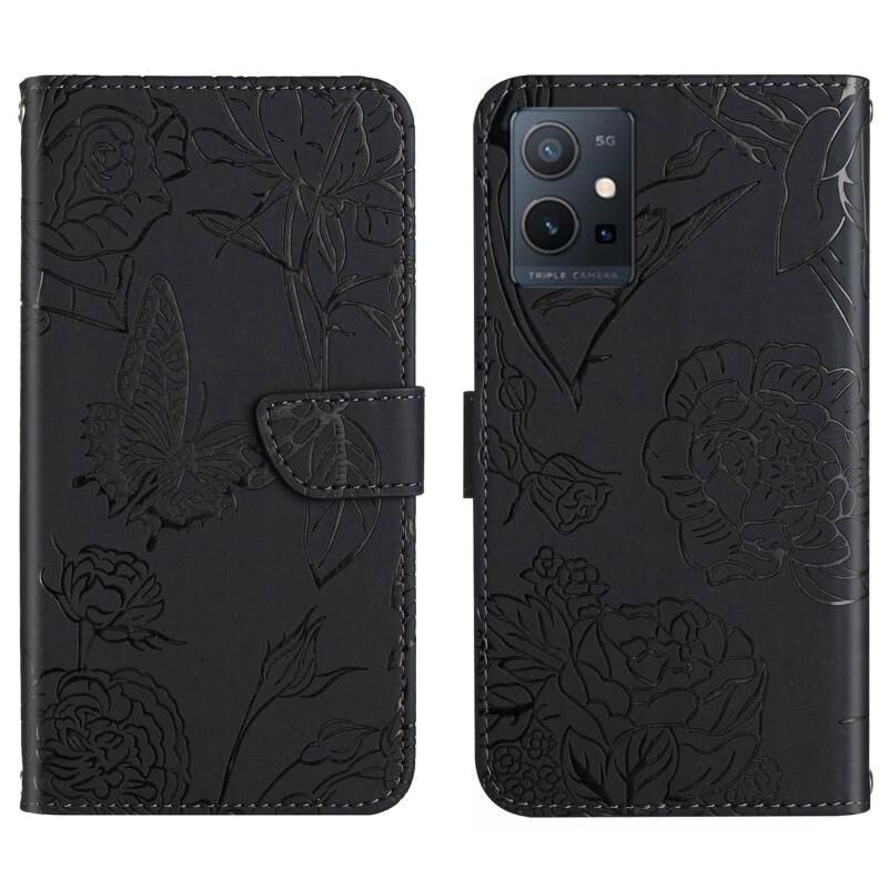 Θήκη τηλεφώνου από δέρμα με ανάγλυφο σχέδιο πεταλούδας και αίσθηση δέρματος για vivo Y55S 5G 2023 / Y55 5G / T1 5G HT03 (Μωβ)