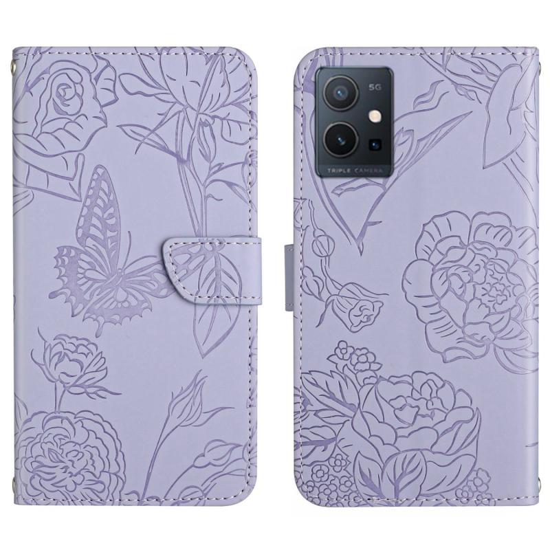 For vivo Y55S 5G 2023 / Y55 5G / T1 5G HT03 Skin Feel Butterfly Embossed Flip Leather Phone Case(Purple)