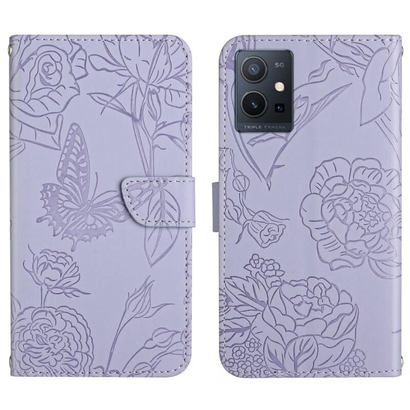 Θήκη τηλεφώνου από δέρμα με ανάγλυφο σχέδιο πεταλούδας και αίσθηση δέρματος για vivo Y55S 5G 2023 / Y55 5G / T1 5G HT03 (Μωβ)