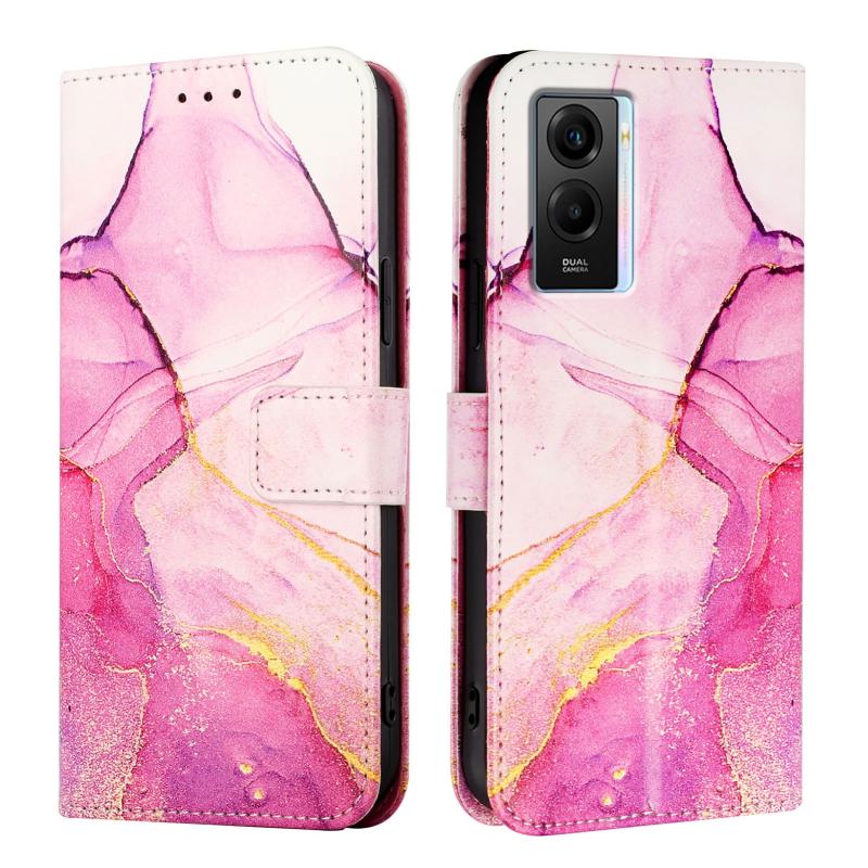 For vivo Y55s 5G 2023 / Y55 5G / Y75 5G PT003 Marble Pattern Flip Leather Phone Case(Pink Purple Gold)