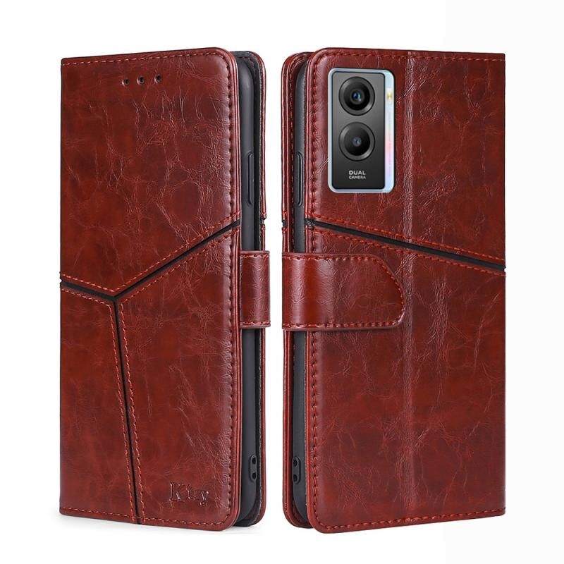 Για το vivo Y55S 5G Γεωμετρική ραφή οριζόντια Flip δερμάτινη θήκη τηλεφώνου (σκούρο καφέ)