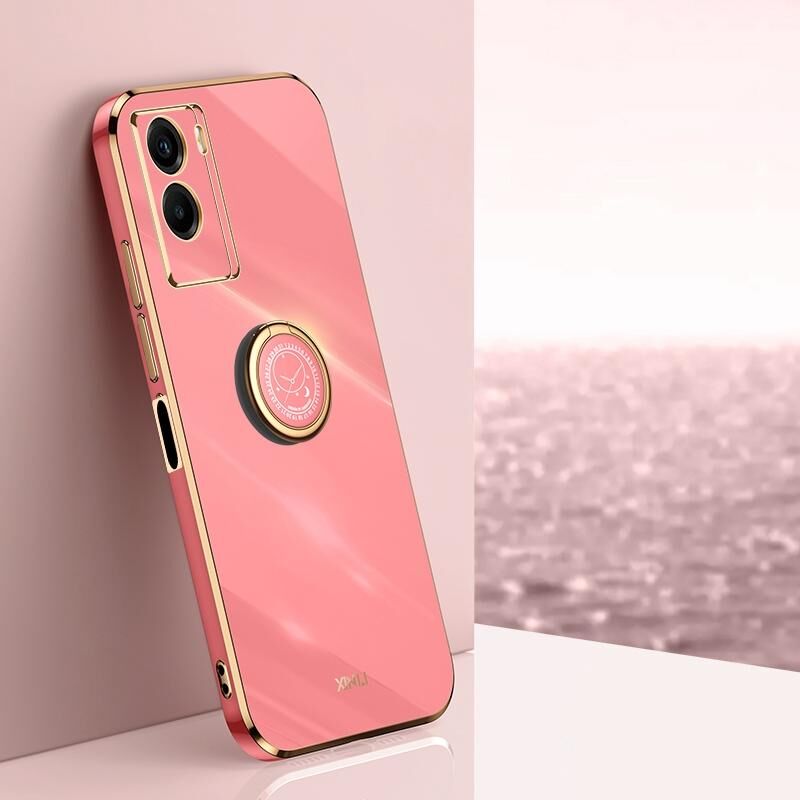 Θήκη τηλεφώνου για vivo Y55s 5G XINLI με ευθείες άκρες, 6D επιμετάλλωση TPU με δακτύλιο στήριξης (Μαύρο)