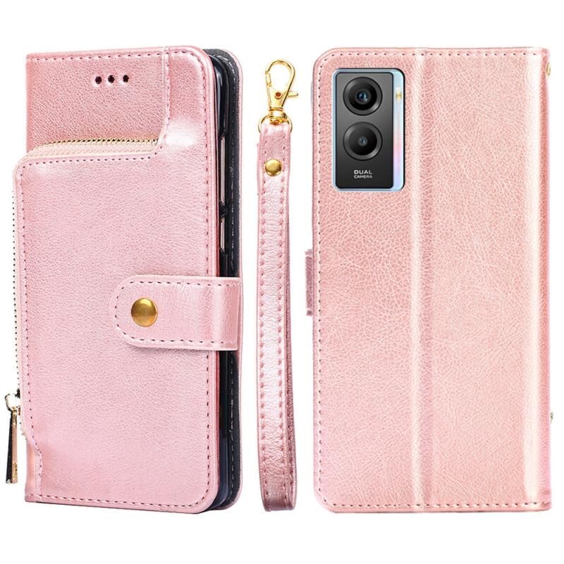 Για vivo Y55s 5G φερμουάρ τσάντα δερμάτινη θήκη τηλεφώνου (Rose Gold)