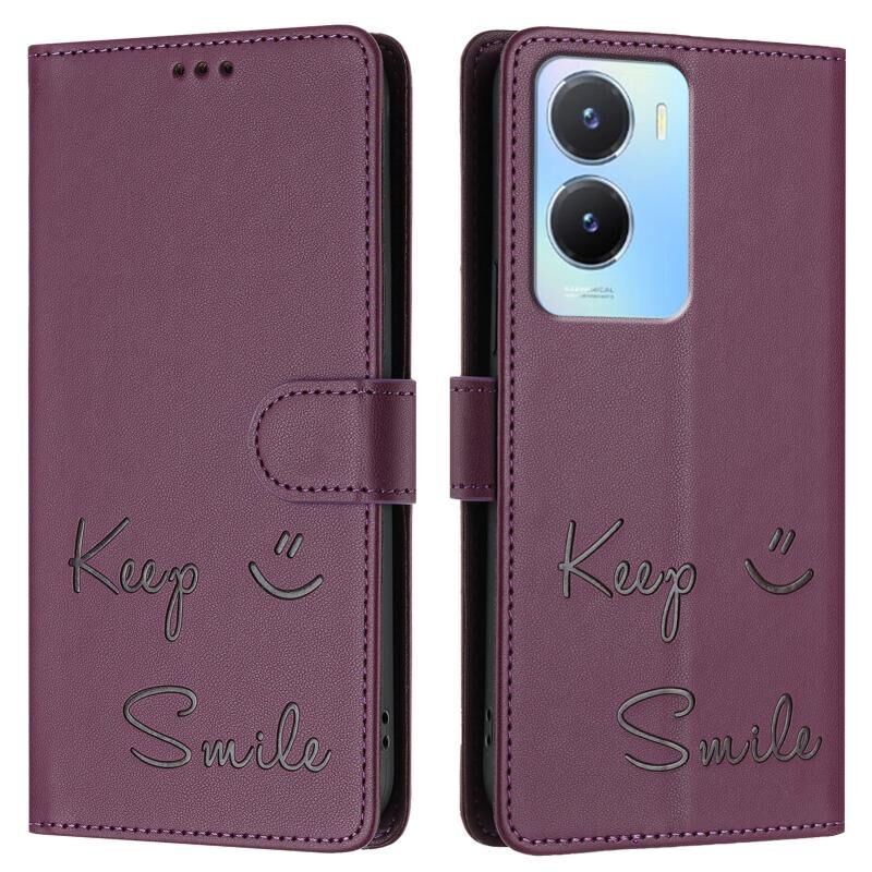 Για vivo Y56 5G Παγκόσμια χαμόγελο ανάγλυφο RFID δερμάτινη θήκη τηλεφώνου (Violet)
