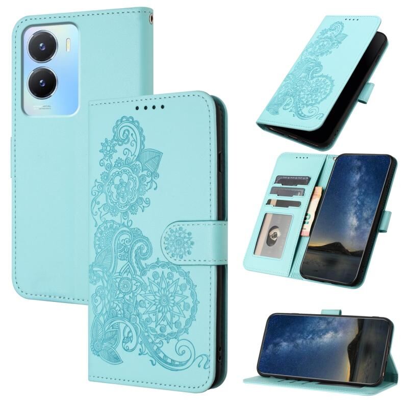 Θήκη τηλεφώνου από δέρμα με ανάγλυφο λουλούδι Datura για vivo Y56 5G Global/Y16 4G Global (Ανοιχτό μπλε)