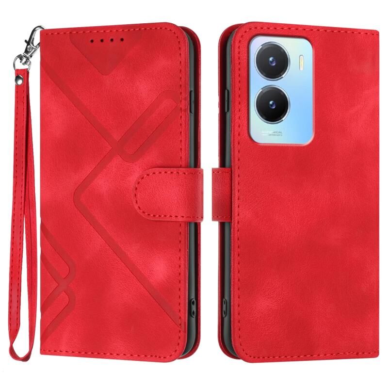 Για το vivo Y56 5G Global/Y16 4G Global Line Pattern Skin Feel Leather Phone Case (κόκκινο)
