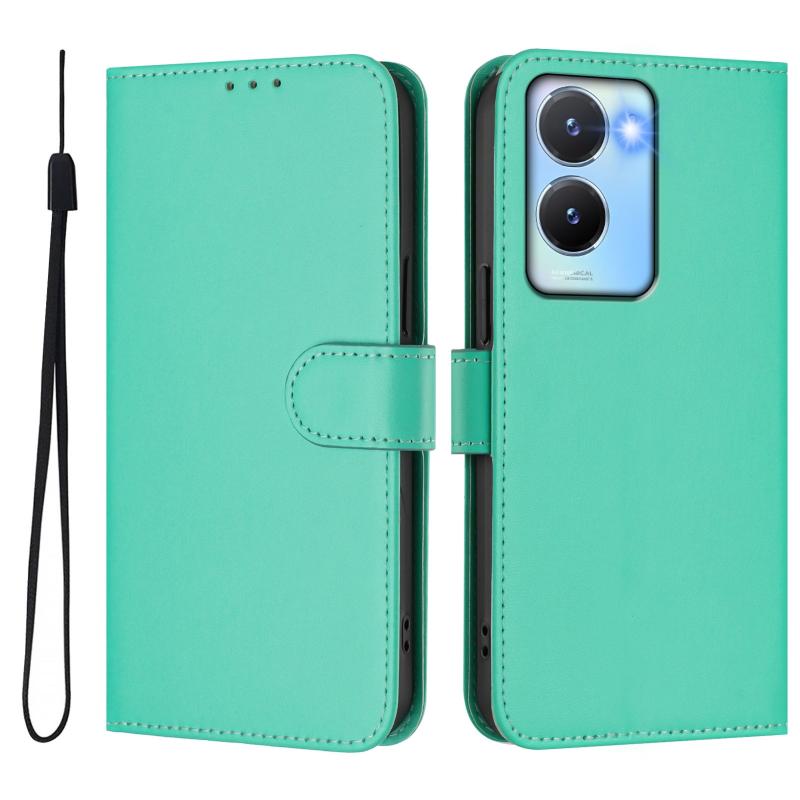 Θήκη τηλεφώνου από δέρμα με συμπαγή χρώματα και κορδόνι για vivo Y56 5G Global / Y16 4G Global (Καφέ)