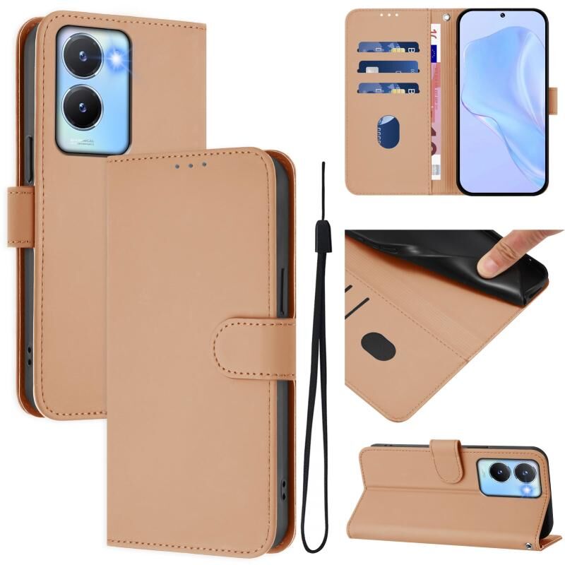 Θήκη τηλεφώνου από δέρμα με συμπαγή χρώματα και κορδόνι για vivo Y56 5G Global / Y16 4G Global (Γυμνή)