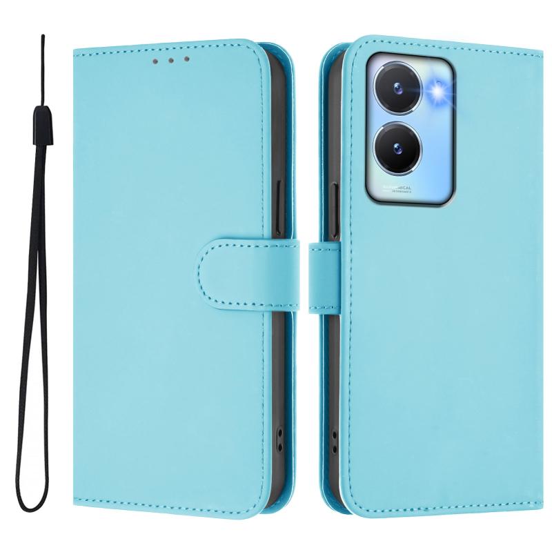 Θήκη τηλεφώνου από δέρμα με συμπαγή χρώματα και κορδόνι για vivo Y56 5G Global / Y16 4G Global (Καφέ)