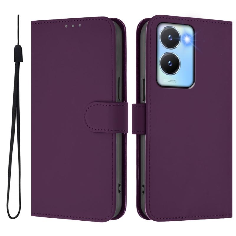 For vivo Y56 5G Global / Y16 4G Global Skin Feel Solid Color Leather Phone Case with Lanyard(Violet)