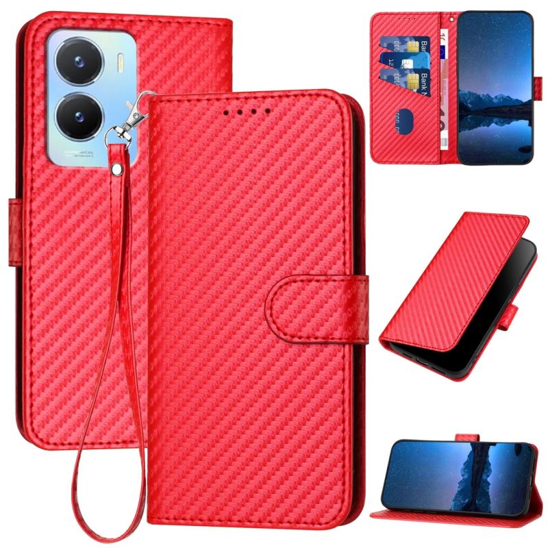 Θήκη τηλεφώνου από δέρμα με ανθρακονήματα και λουρί για vivo Y56 5G/Y16 4G/Y02s 4G Global YX0070 (Κόκκινο)