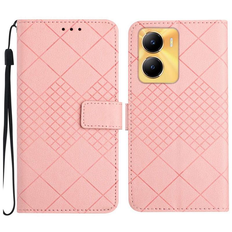 For vivo Y56 5G / Y16 4G / Y02s Global Rhombic Grid Texture Leather Phone Case(Pink)