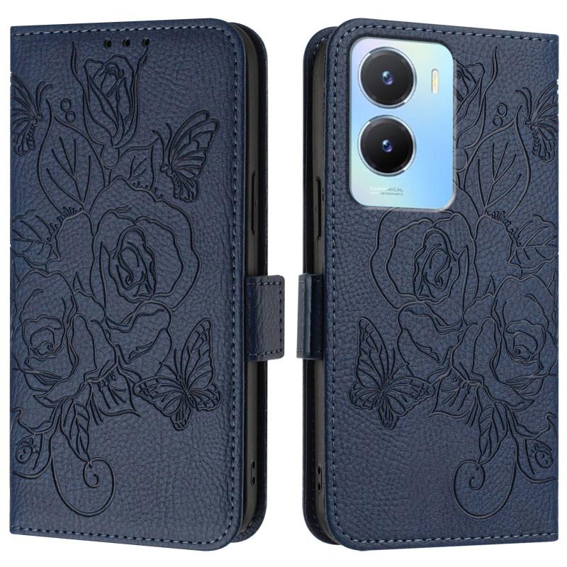 Θήκη τηλεφώνου από δέρμα με ανάγλυφο σχέδιο τριαντάφυλλου και προστασία RFID κατά της κλοπής για vivo Y56 5G / Y16 / Y02s (Πράσινη)