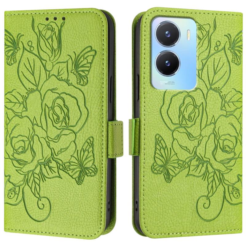 Θήκη τηλεφώνου από δέρμα με ανάγλυφο σχέδιο τριαντάφυλλου και προστασία RFID κατά της κλοπής για vivo Y56 5G / Y16 / Y02s (Πράσινη)