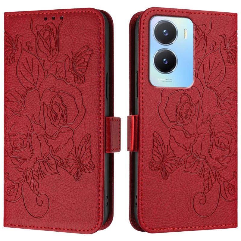 Θήκη τηλεφώνου από δέρμα με ανάγλυφο σχέδιο τριαντάφυλλου και προστασία RFID κατά της κλοπής για vivo Y56 5G / Y16 / Y02s (Πράσινη)