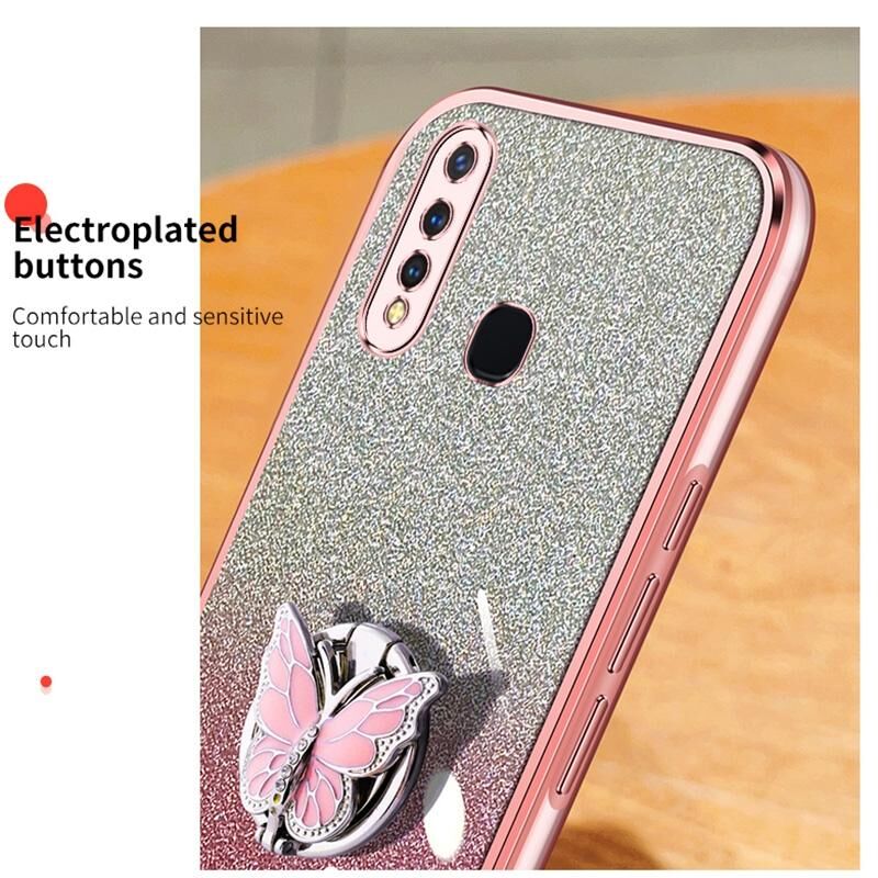 Για το vivo Y5s Επιμεταλλωμένο διαβάθμιση Glitter πεταλούδα κάτοχος TPU τηλέφωνο υπόθεση (Sierra Blue)