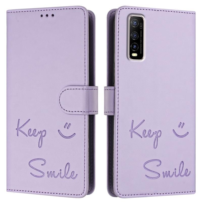 Για vivo Y70S Χαμόγελο ανάγλυφο RFID δερμάτινη θήκη τηλεφώνου (Light Purple)