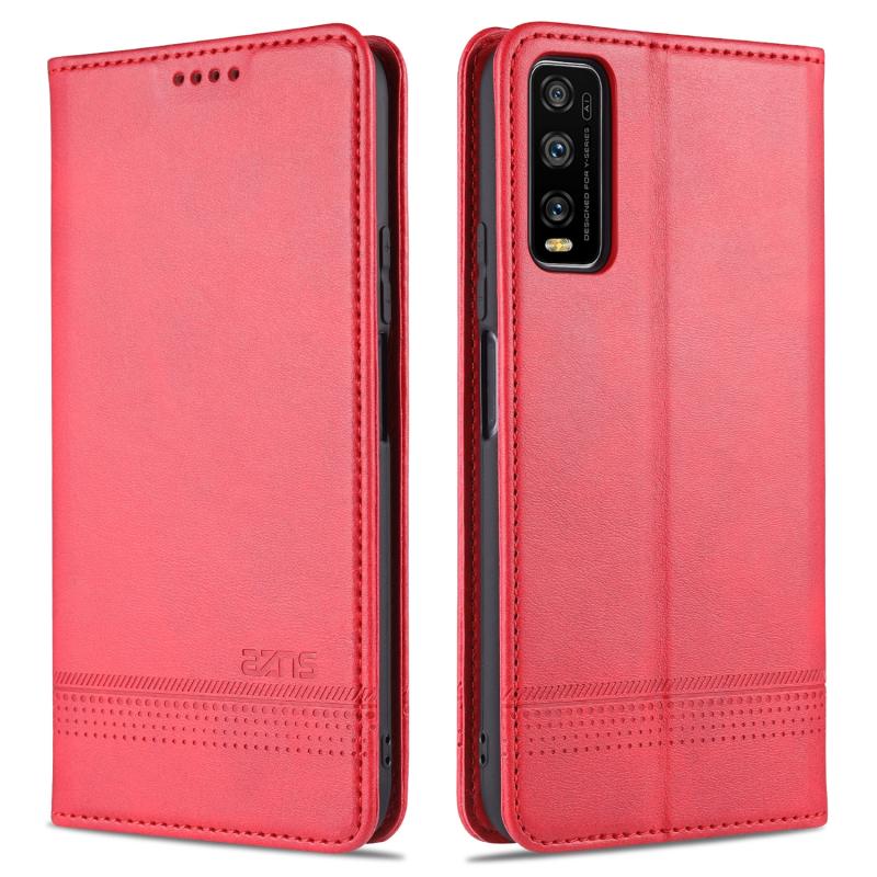 Θήκη δέρματος οριζόντιας αναδίπλωσης με μαγνητικό ανάγλυφο μοσχαρίσιου δέρματος για vivo Y70s / Y51s / IQOO U1 AZNS με υποδοχές καρτών & βάση & πορτοφόλι (Κόκκινο) (Κόκκινο)