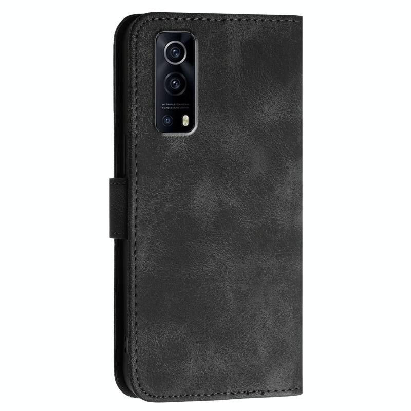 Θήκη τηλεφώνου δερμάτινη με ανάγλυφο σχέδιο πλέγματος και πεταλούδας για vivo Y72 5G / iQOO Z3 με κορδόνι (Σκούρο Μπλε)