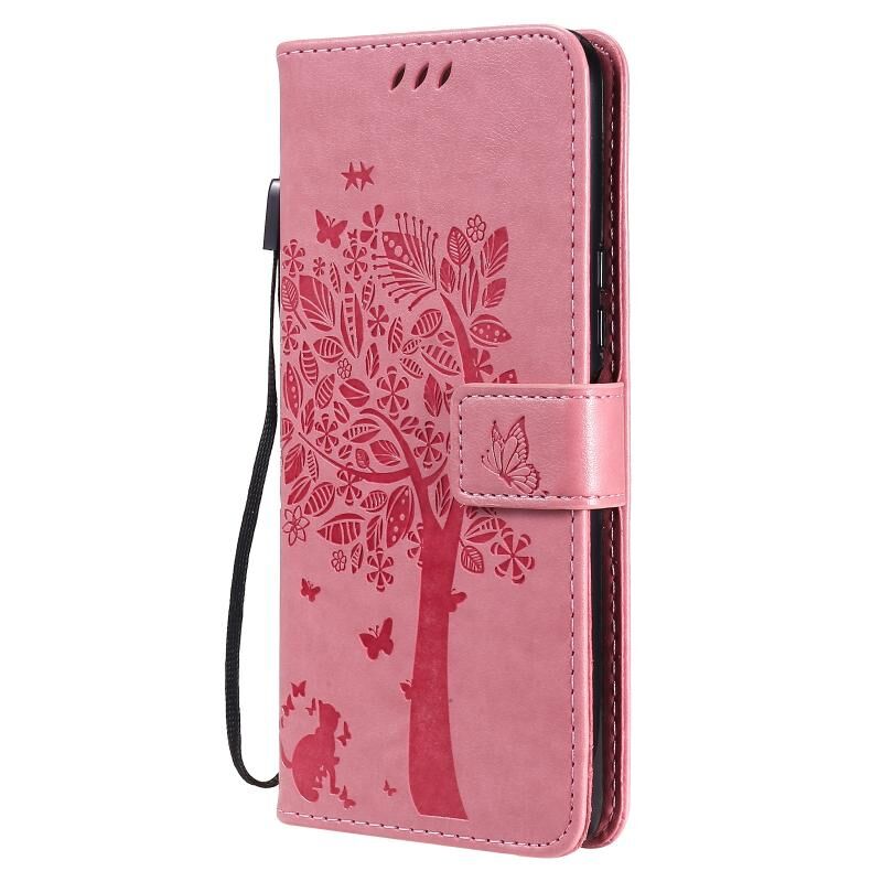 Θήκη για vivo Y72 5G / iQOO Z3 με ανάγλυφο σχέδιο Δέντρου & Γάτας, οριζόντια, από δερματίνη PU με βάση στήριξης & θήκες για κάρτες & πορτοφόλι & κορδόνι (Πράσινο)