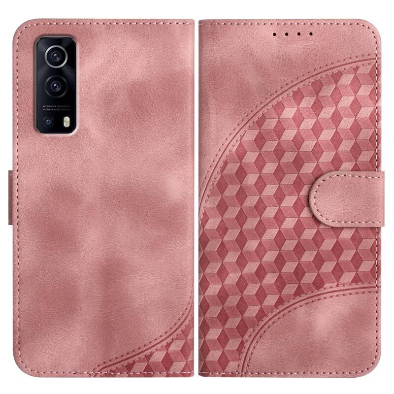 Θήκη δερμάτινη για vivo Y72 5G/iQOO Z3/Y52 5G με ανάγλυφο σχέδιο κεφαλής ελέφαντα και κορδόνι (Ανοιχτό Μωβ)