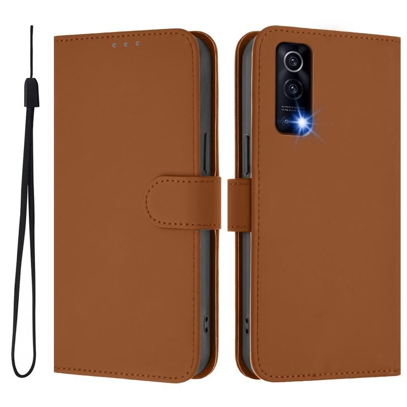 Θήκη τηλεφώνου από δέρμα με αίσθηση αφής, συμπαγές χρώμα για vivo Y72 5G / iQOO Z3 / Y52 5G με κορδόνι (Καφέ)