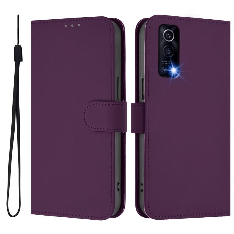 Θήκη τηλεφώνου από δέρμα με αίσθηση αφής, συμπαγές χρώμα για vivo Y72 5G / iQOO Z3 / Y52 5G με κορδόνι (Βιολετί)