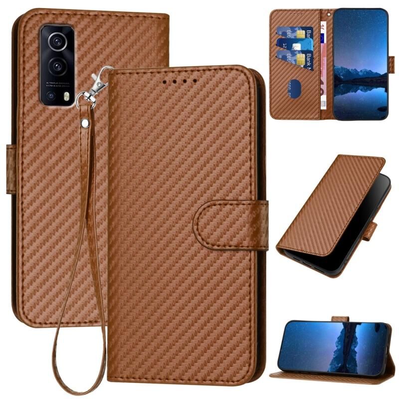 Θήκη τηλεφώνου από δέρμα με ανθρακονήματα και λουρί για vivo Y72 5G / iQOO Z3 YX0070 (Καφέ)