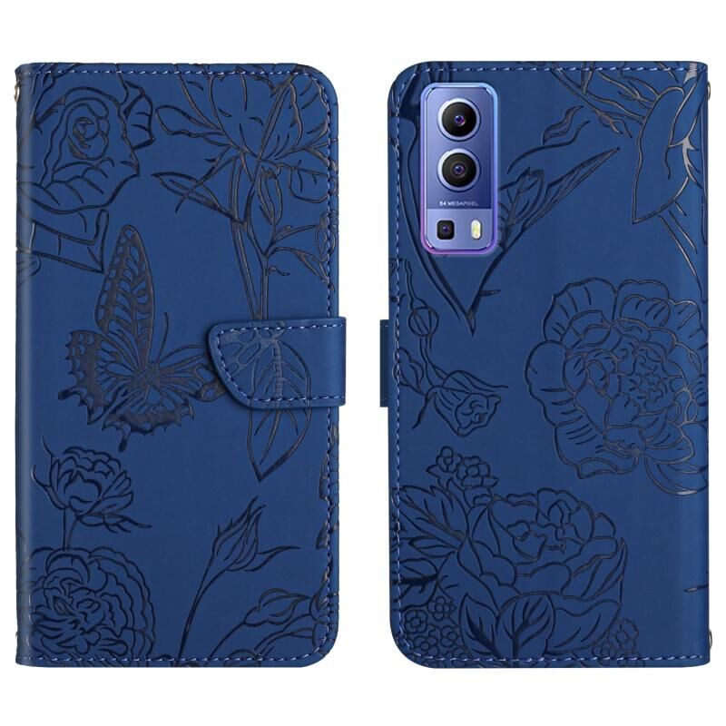 Θήκη τηλεφώνου από δέρμα με ανάγλυφο σχέδιο πεταλούδας και παιώνιας για vivo Y72 5G (Κόκκινο)