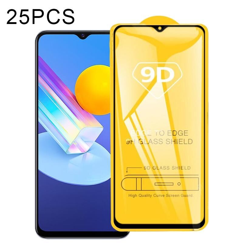 Για vivo Y72 5G / Y02 / Y02s / Y35 5G / iQOO Z7i / Y11 2023 / Y02A / Y02t 25 PCS 9D Πλήρης κόλλα πλήρους οθόνης μετριασμένη γυάλινη μεμβράνη