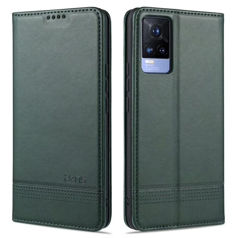 Για το vivo Y73 (2021) AZNS Μαγνητική θήκη οριζόντιας αναδιπλούμενης δερμάτινης θήκης με υποδοχές για κάρτες & θήκη & πορτοφόλι (σκούρο πράσινο) (πράσινο)