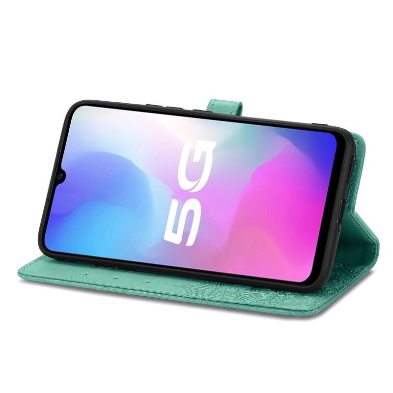 Θήκη δέρματος οριζόντιας αναδίπλωσης για vivo Y73S 5G με ανάγλυφο σχέδιο Mandala Flower, με βάση στήριξης & τρεις θήκες για κάρτες & πορτοφόλι & κορδόνι (Μαύρο)
