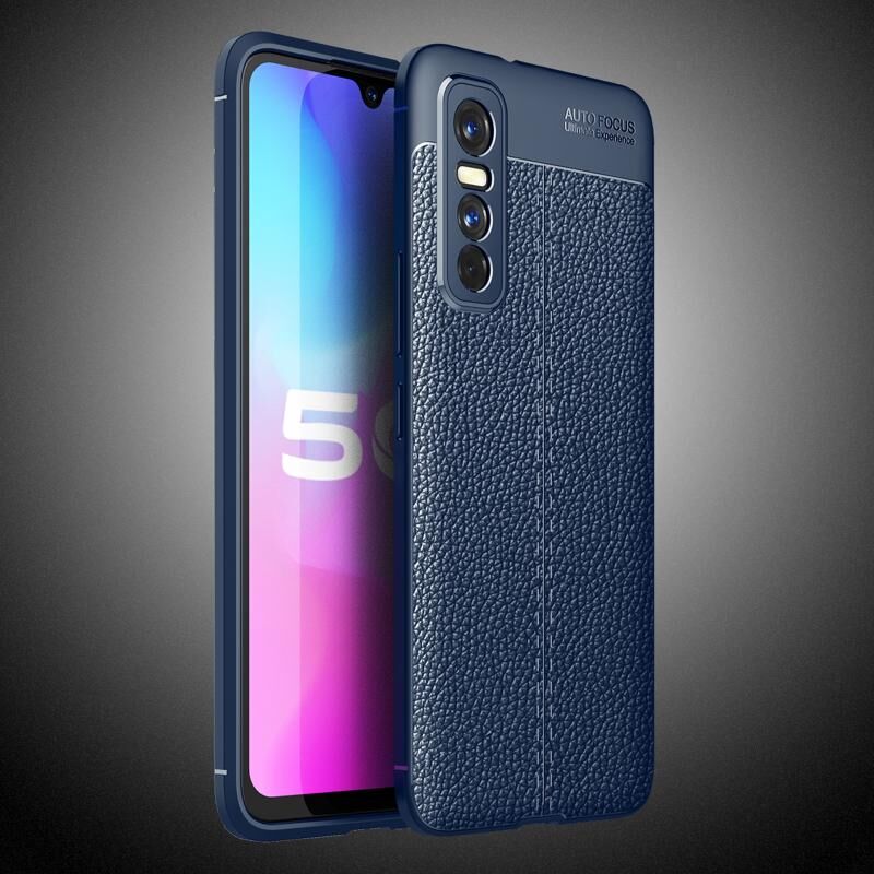 Θήκη προστασίας για vivo Y73s με υφή Litchi από TPU, αντικραδασμική (Μαύρο)