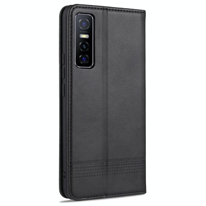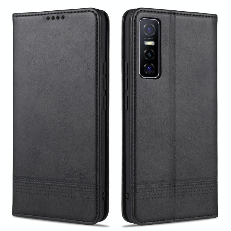 Θήκη δέρματος οριζόντιας αναδίπλωσης με μαγνητικό ανάγλυφο μοσχαρίσιου δέρματος για vivo Y73s / S7e AZNS με υποδοχές καρτών & βάση & πορτοφόλι (Κόκκινο) (Μαύρο)