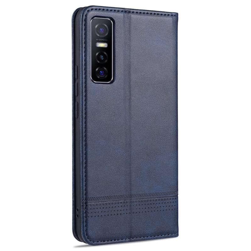 Θήκη δέρματος οριζόντιας αναδίπλωσης με μαγνητικό ανάγλυφο μοσχαρίσιου δέρματος για vivo Y73s / S7e AZNS με υποδοχές καρτών & βάση & πορτοφόλι (Κόκκινο) (Σκούρο μπλε)