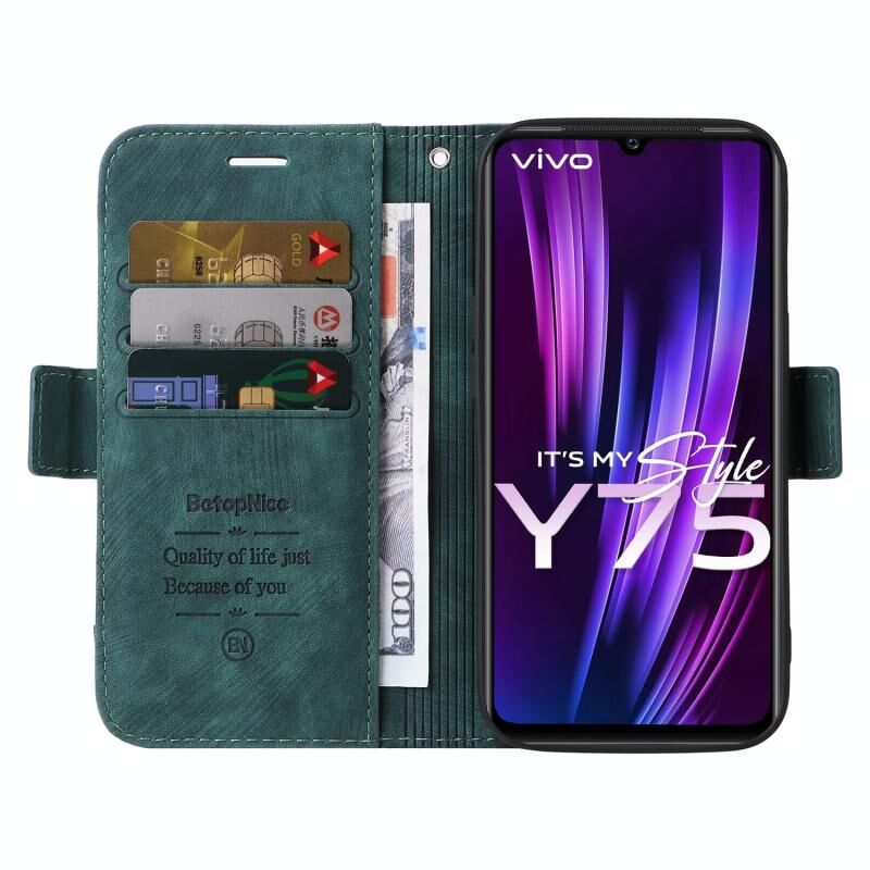 Θήκη τηλεφώνου από δέρμα με διπλή αγκράφα BETOPNICE για vivo Y75 4G / V23e 4G/5G (Μωβ) (BETOPNICE)