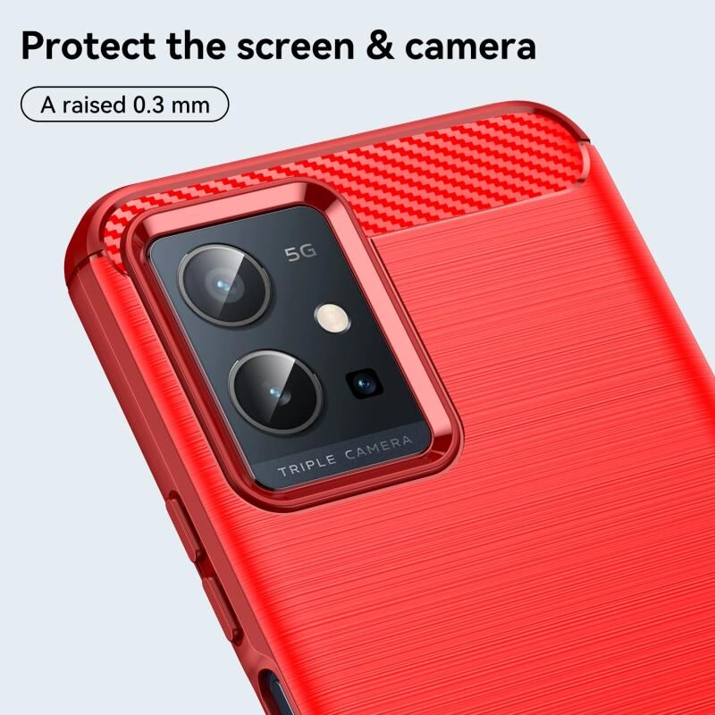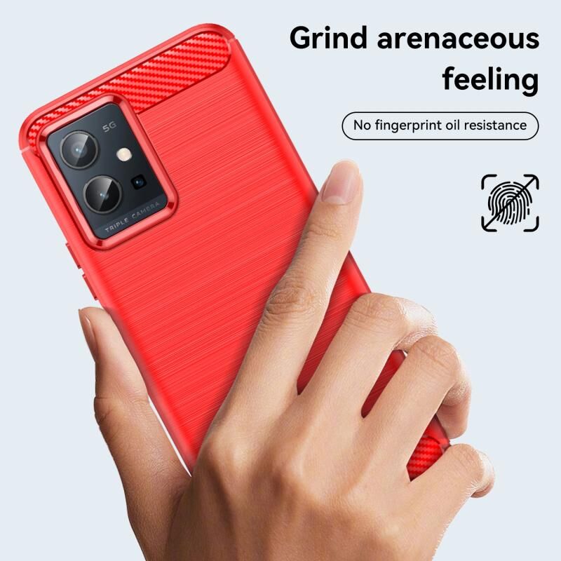 Για vivo Y75 5G βουρτσισμένη υφή Carbon Fiber TPU τηλέφωνο υπόθεση (κόκκινο)