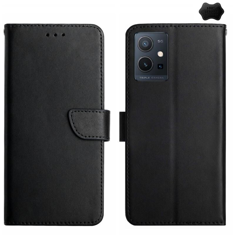 Θήκη τηλεφώνου τύπου flip από γνήσιο δέρμα για vivo Y75 5G Global, ανθεκτική στα δακτυλικά αποτυπώματα (Μαύρο)