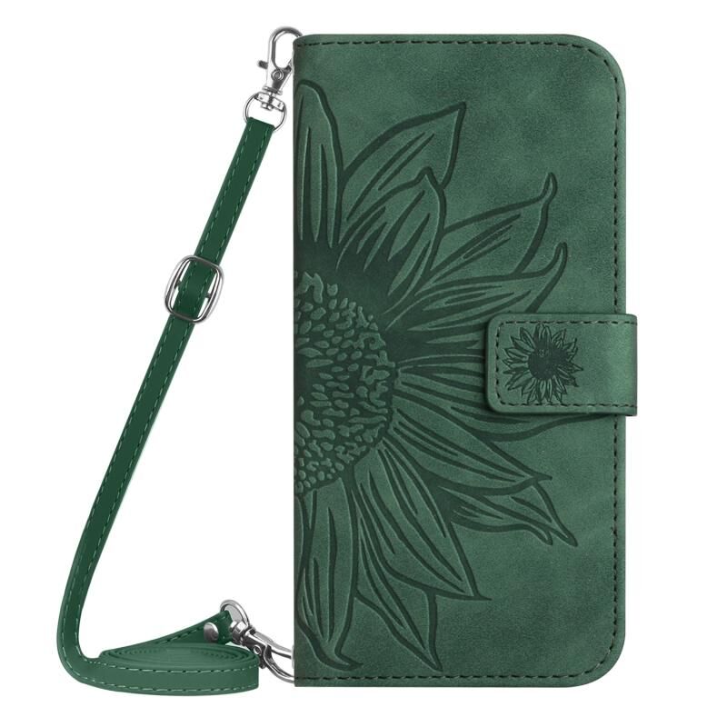 Για το vivo Y75 5G Παγκόσμια αίσθηση δέρματος Sun Flower ανάγλυφο Flip δερμάτινη θήκη τηλεφώνου με κορδόνι (πράσινο)