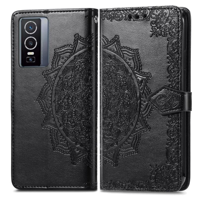 Για το vivo Y76 5G Mandala λουλούδι ανάγλυφο Flip δερμάτινη θήκη τηλεφώνου (Μαύρο)