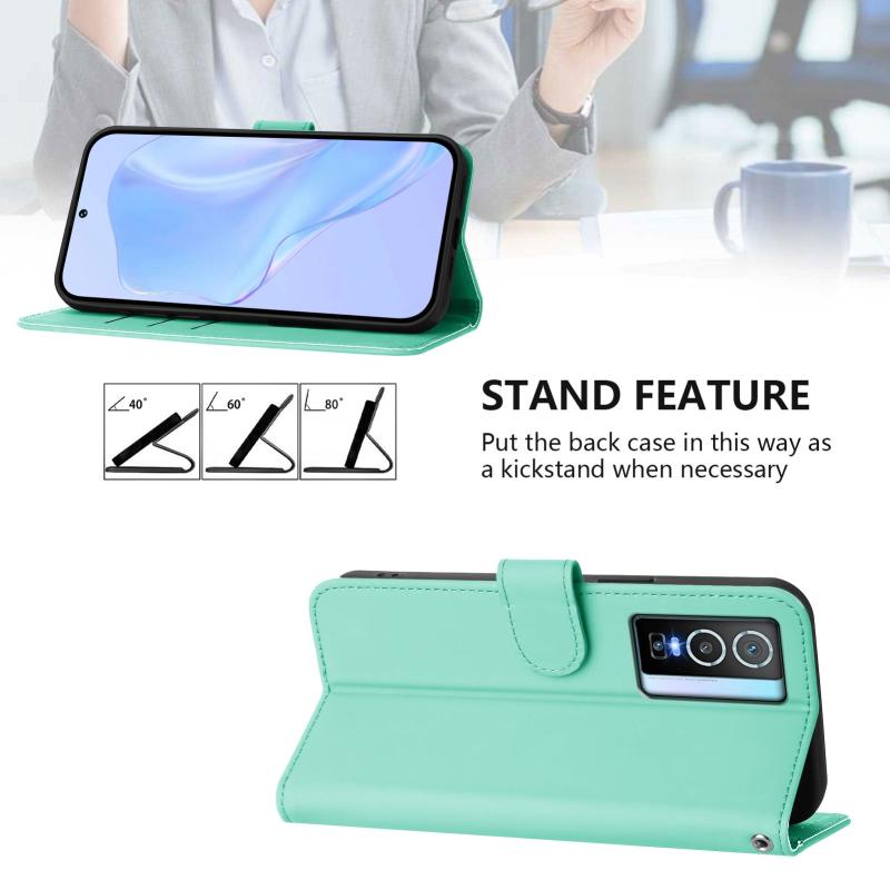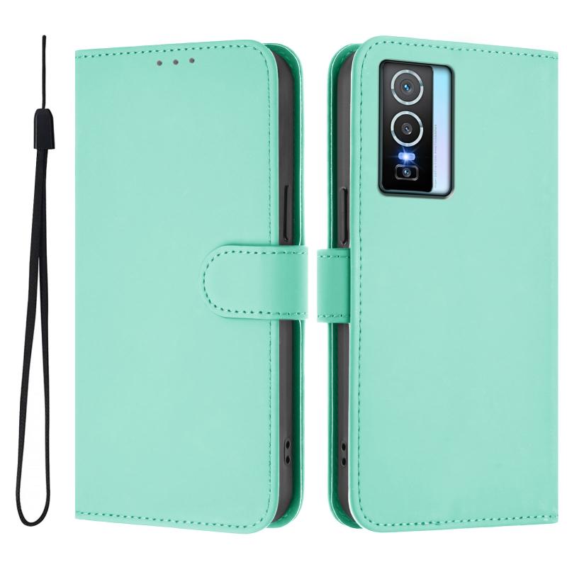 Θήκη τηλεφώνου από δέρμα με συμπαγή χρώματα και αίσθηση δέρματος για vivo Y76 5G με κορδόνι (Μέντας πράσινο)