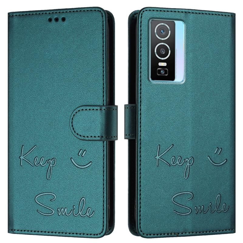 Για vivo Y76 5G Χαμόγελο ανάγλυφο RFID δερμάτινη θήκη τηλεφώνου (Πράσινο παγώνι)