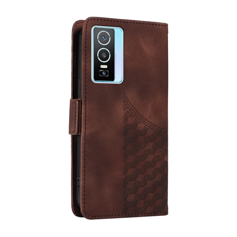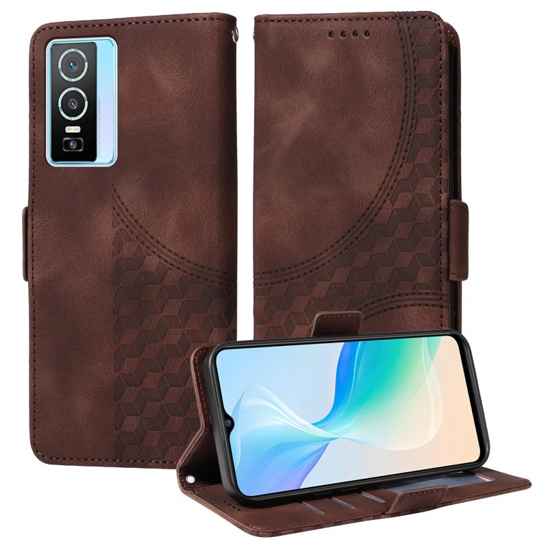 For vivo Y76 5G / Y76s Embossed Rhombus Starry Leather Phone Case(Brown)