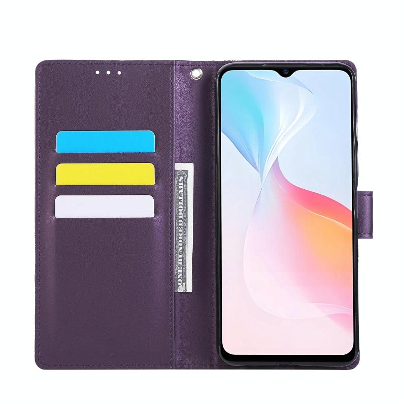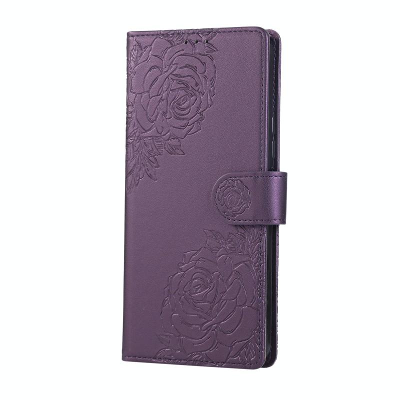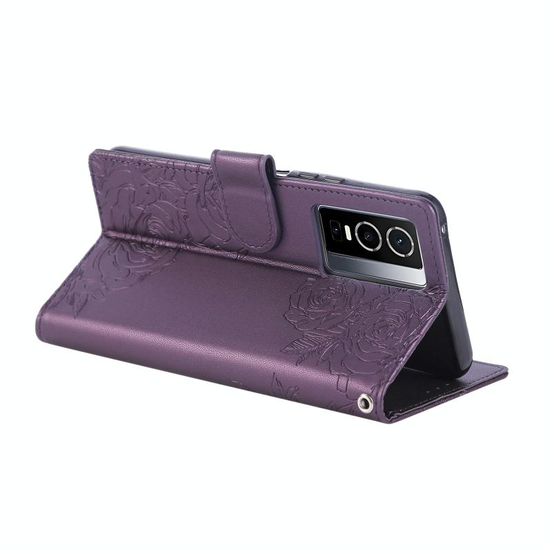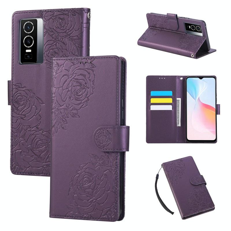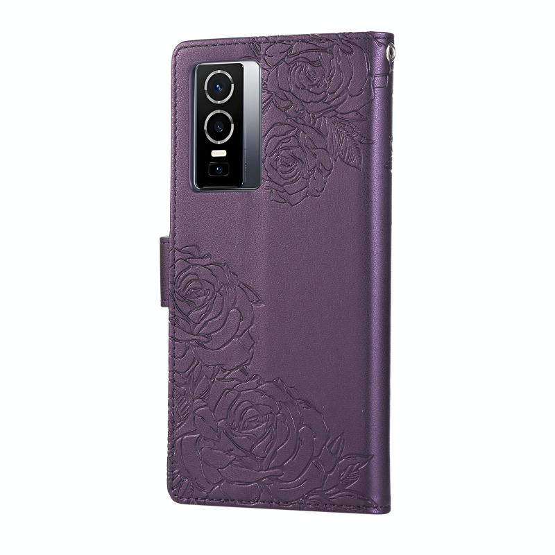 For vivo Y76s 5G / Y76 5G Rose Flower Embossed 3-Card Slots Leather Phone Case(Deep Purple)