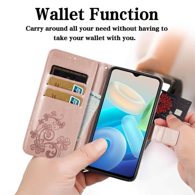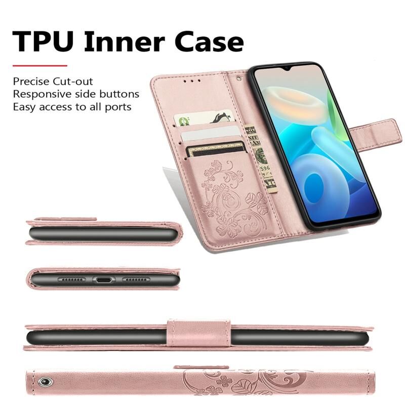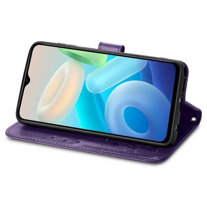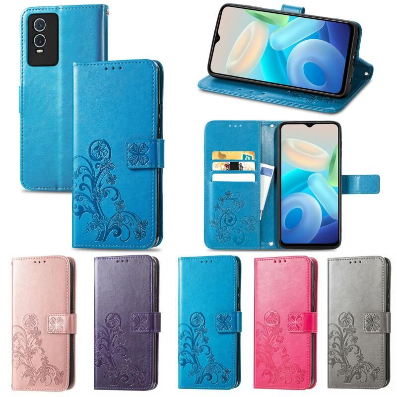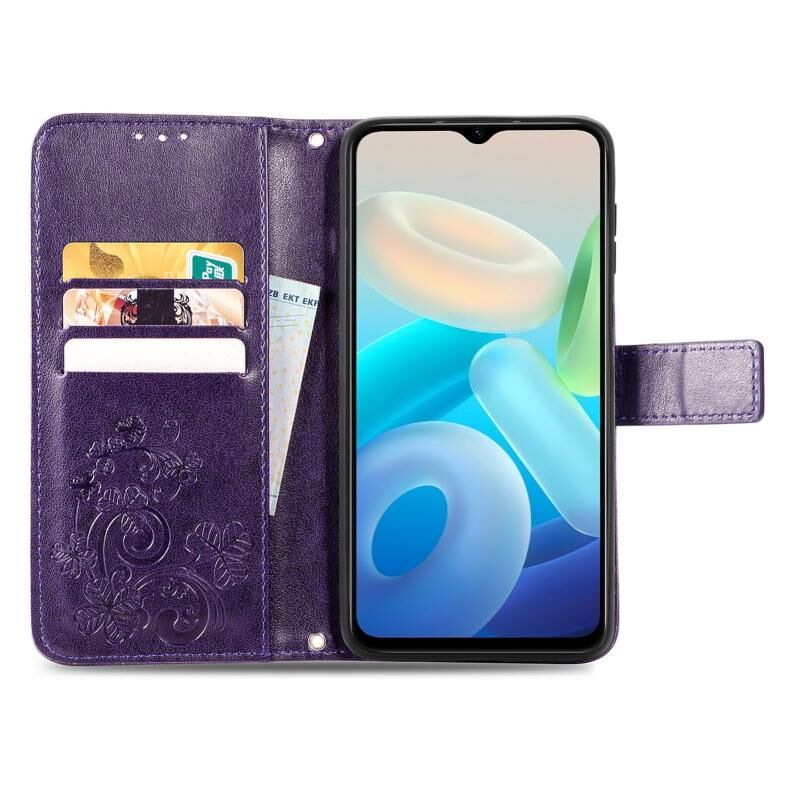 Για Vivo Y76s Τέσσερα φύλλα κούμπωμα ανάγλυφο δέρμα τηλέφωνο υπόθεση (Μωβ)